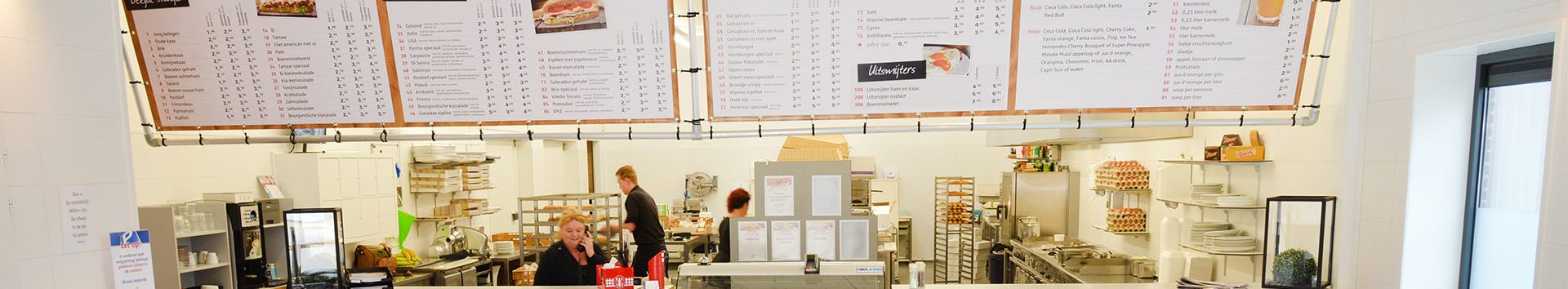 Van een vroeg ontbijt tot een late lunch: elke werkdag kunt u van 6.30 tot 14.00 uur terecht in onze lunchroom, waar we ter plekke vers belegde broodjes voor u klaarmaken. Geniet van een snelle lunch aan een van de statafels. In onze open keuken kunt u zien hoe we alles ambachtelijk en vers bereiden. We maken niks van tevoren. En toch kunt u gegarandeerd snel genieten van uw broodje!